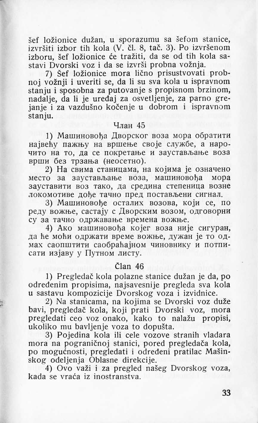 Objavljujemo Pravilnik broj 65 o vršenju službe prilikom saobraćaja Dvorskih vozova iz 1932. godine. Pravilnik je donesen od strane Državne željeznice Kraljevine Jugoslavije.