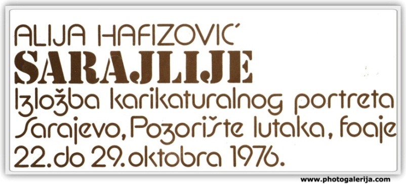 Bei einem kürzlichen Treffen von Sammlern in der „Ami-Galerie“ (Alta Shopping Center in Sarajevo) bemerkte ich ein Plakat-Einladung, die auf eine Ausstellung karikaturartiger Porträts hinweist, um genauer zu sein, im Titel „Alija Hafizović, Sarajevo, Ausstellung karikaturhafter Porträts Sarajevo, Puppentheater, Foyer vom 22. bis 29. Oktober 1976“. Glücklich und ohne zögern erwarb ich dieses wertvolle Dokument. Die karikaturartigen Porträts entstanden in den siebziger Jahren, als zu dieser Zeit im damaligen JRT die Quiz-Show „Sieben Fallen“ ausgestrahlt wurde. Da diese Sendung aus drei Studios – Belgrad, Sarajevo und Zagreb – produziert wurde, wollte der Redakteur Mile Pećanac Sarajevo etwas Originelles bieten und schlug Hafiz (als Gastgeber dieses Quiz) vor, die Gäste auf seine eigene Art zu porträtieren. Nach Ende der Ausstrahlung der Serie wurden alle Porträts in zwei Ausstellungen zusammengefasst: „Sarajlije“ und „Mostarci“. Derzeit befinden sich die Porträts im Besitz des Museums der Stadt Sarajevo (kaufweise), und anlässlich des 45-jährigen künstlerischen Schaffens des Malers, Karikaturisten, Musikers und Journalisten Alija Hafizović wurde am 25.05.2011 eine weitere Ausstellung veranstaltet.