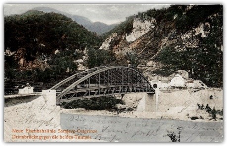 Простирање поменутих саобраћајница (у измењеном правцу и укупној дужини) у време аустроугарске окупације Босне и Херцеговине, од караванског до макадамског пута, настале су саобраћајнице новије технике – железничке пруге. Железничка уздужна пруга, где се одвајала на мосту на Дрини при ушћу Лима, изграђена је од Сарајева до Увца, односно до Вишеграда и Добруна.