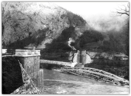 Планирањем и будућом изградњом Хидроелектране Вишеград почињу последњи дани у одбројавању живота овог железничког моста, тада у служби као друмски мост. Наиме, почетком новембра 1989. године, пред званично пуштање првог агрегата у погон (26. новембра 1989.), уз јеке сирена одјекњавале су експлозије мина, тако да се брзо мењао рељеф кањона Дрине и Лима. Метална конструкција моста која и даље чврсто стоји на својим куловима, из минута у минут, полако улази у вечни подводни свет. Мост који је седам деценија поносно преносио путничке и теретне возове у оба правца, чврсто повезујући људе с једне обале на другу, стварајући трајна пријатељства и љубави, доприносећи људској жељи за заједничким животом и друженом, сада одлази у мир реке.