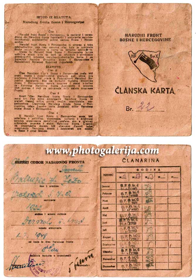 Narodni Front-Članska karta