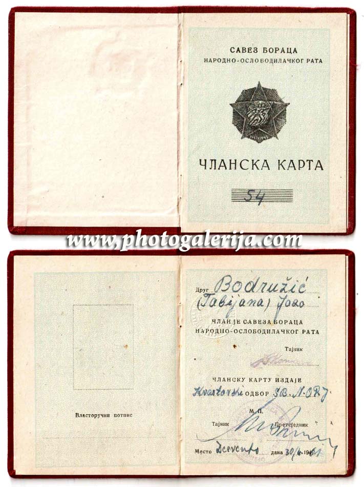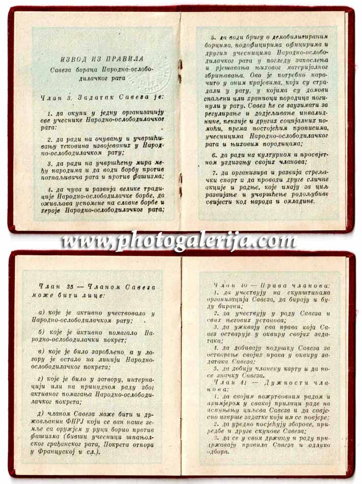 Članska knjižica Saveza boraca NOR-a