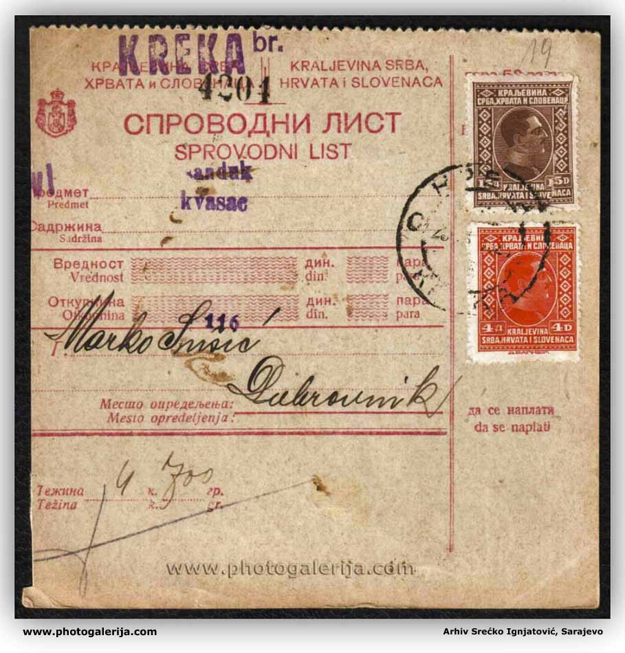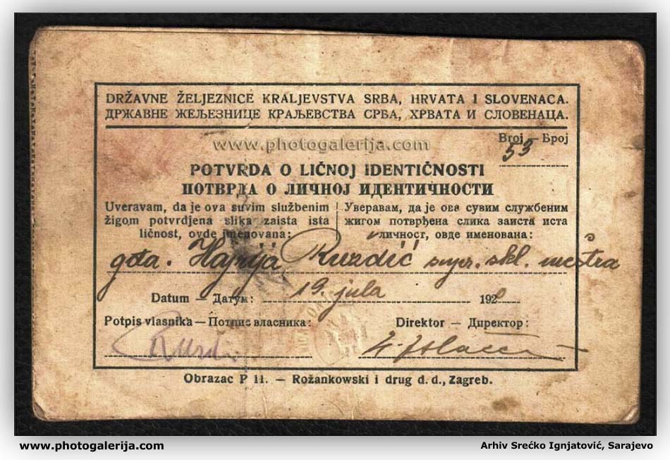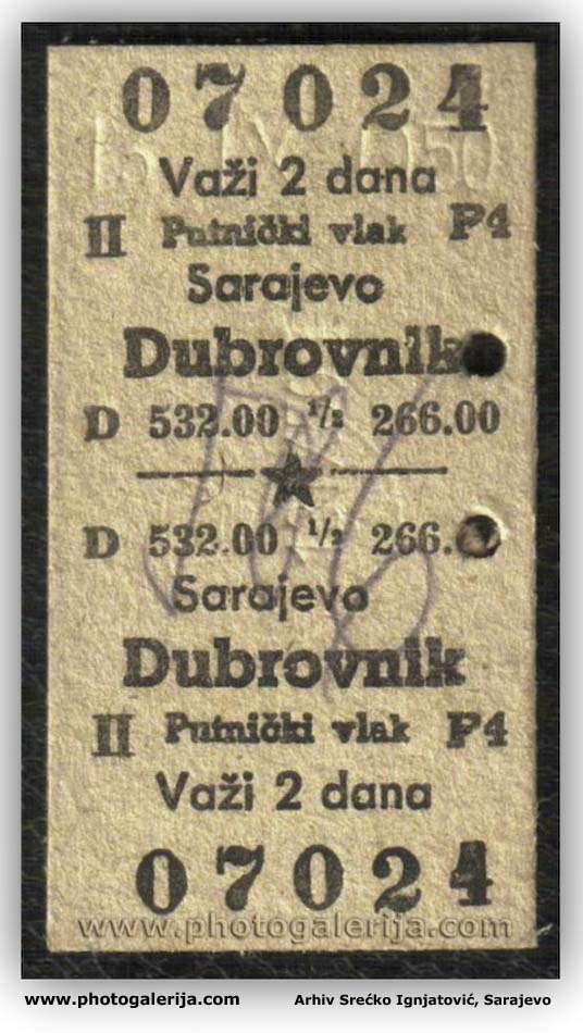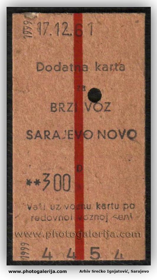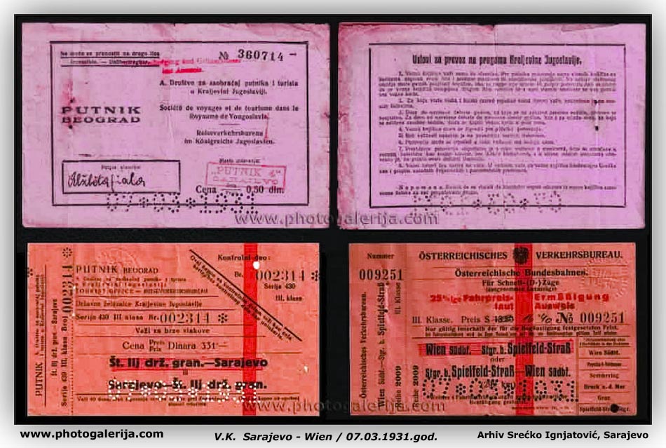 Na ovoj stranici objavljujem vozna dokumenta za prevoz putnika i robe. Dokumenta potiču iz perioda od 1920. do 1961. godine na železnicama: Jugoslovenske državne železnice (JDŽ – Kraljevina Srba, Hrvata i Slovenaca), Hrvatske državne železnice (HDŽ – NDH 1941–1945) i Jugoslovenske železnice (JŽ – FNRJ/SFRJ). U galeriji možete videti vozne karte za unutrašnji saobraćaj uzanih pruga u BiH (povlašćene i besplatne karte), međunarodne vozne karte, mesečne (pretplatne) karte, legitimacije (sa popustom i za kupovinu mesečnih karata), potvrde o ličnoj identifikaciji, sprovodne listove (ekspresne pošiljke), knjižice i dr.